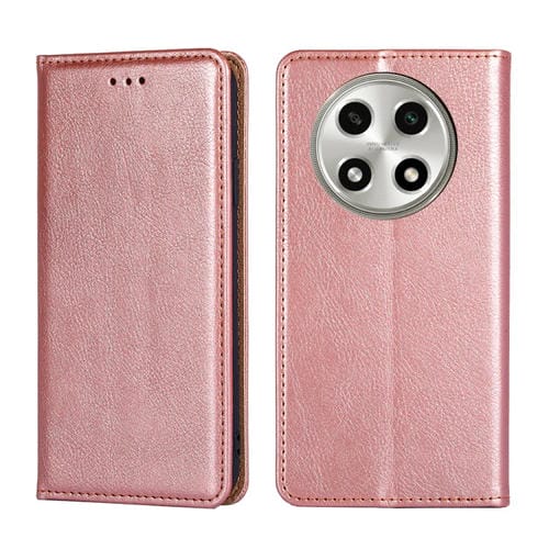 Para Oppo A2 Pro 5G Estuche de Teléfono de Cuero Magnético de Color Sólido con Aceite Brillante (Oro Rosa)