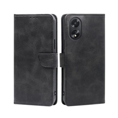 Para Oppo A38 4G / A18 4G Funda para Teléfono de Cuero con Tapa con Hebilla y Textura de Pantorrilla (Negro)