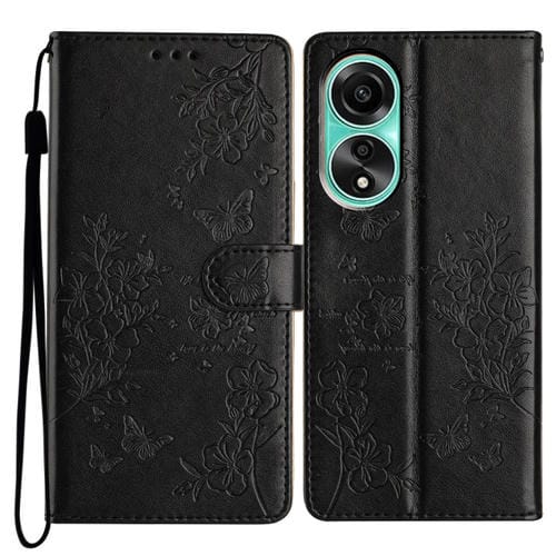 Para Oppo A38 4G / A18 Funda para Teléfono de Cuero con Relieve de Flor de Amor y Mariposa (Negro)