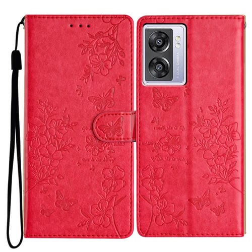 Para Oppo A57 4G / 5G / A77 5G Funda para Teléfono de Cuero con Relieve de Flor de Amor y Mariposa (Rojo)
