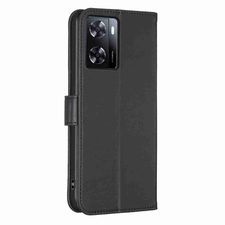 Para Oppo A57 4G Funda de Cuero con Relieve de Cuatro Hojas (Negro)