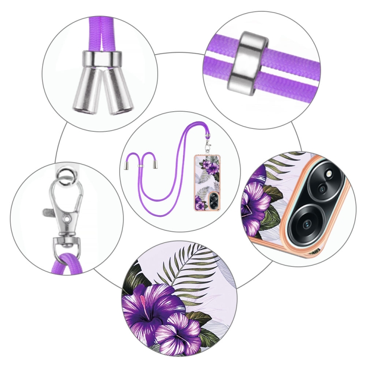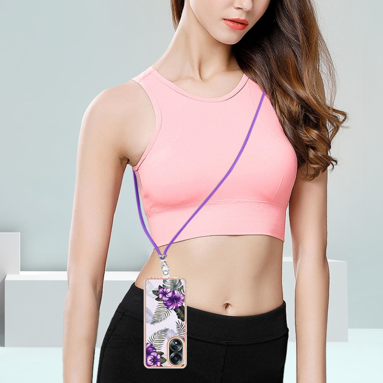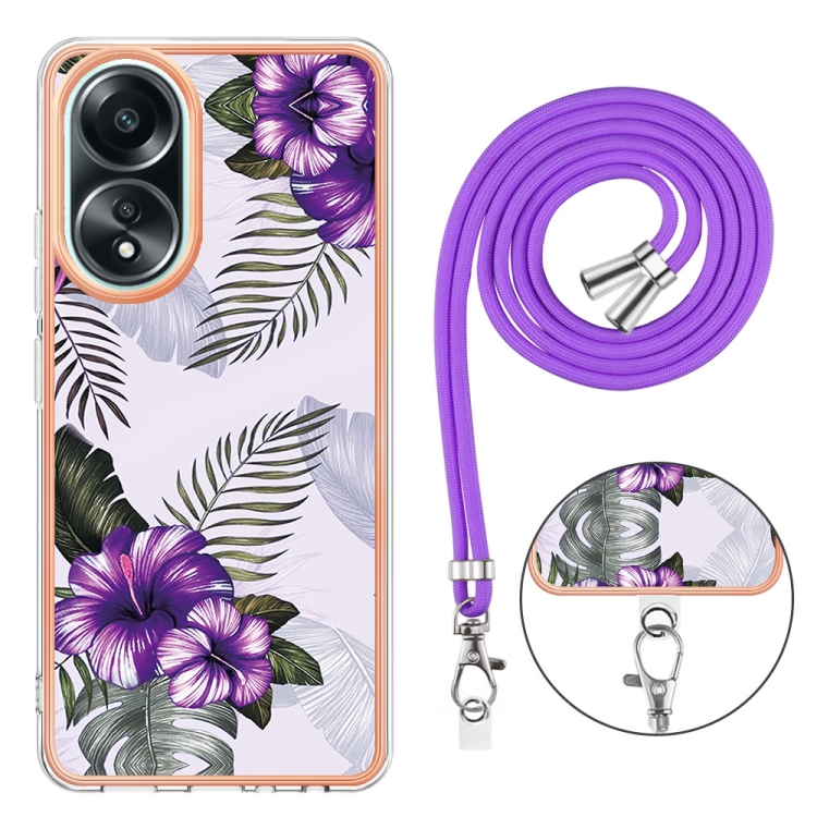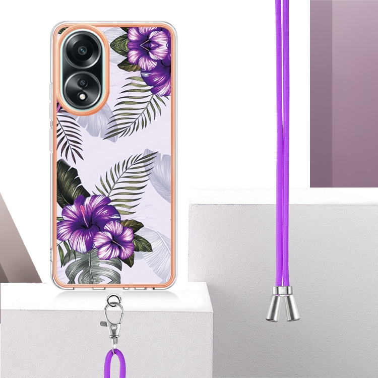 Para Oppo A58 4G Caja de Teléfono Imd TPU con Galvanoplastia con Cordón (Flor Púrpura)