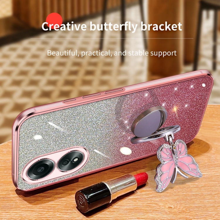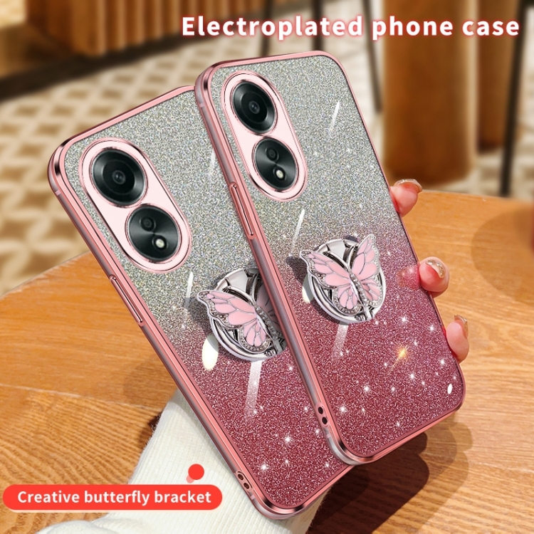 Para Oppo A58 4G Funda para Teléfono de TPU con Soporte de Mariposa con Brillo Degradado Plateado (Negro)