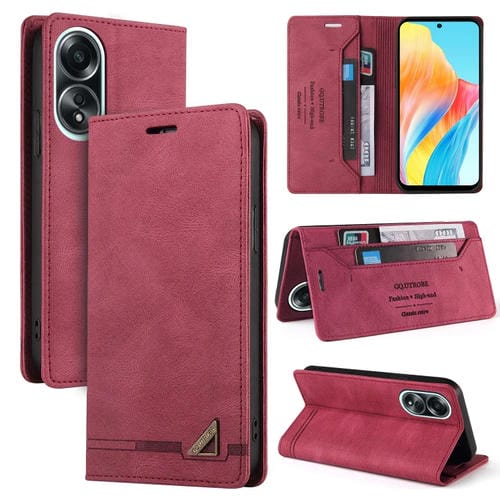 Para Oppo A58 4G Skin Feel Funda de Cuero con Tapa Horizontal con Cepillo Antirrobo y Soporte (Rojo Vino)