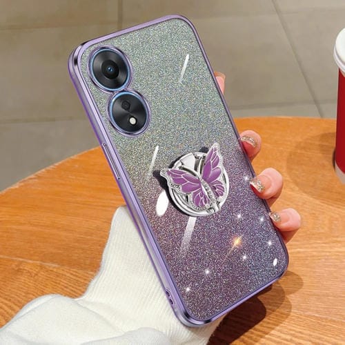 Para Oppo A58 5G Funda para Teléfono de TPU con Soporte de Mariposa con Brillo Degradado Plateado (Púrpura)