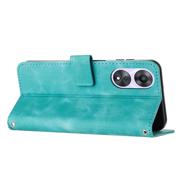Para Oppo A58 / A78 Dream Triangle Funda de Cuero para Teléfono con Cordón Largo (Verde)