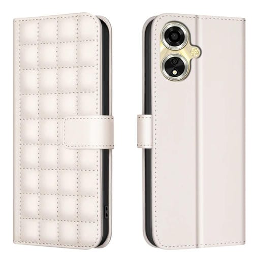 Para Oppo A59 5G Funda de Cuero con Textura Cuadrada (Beige)