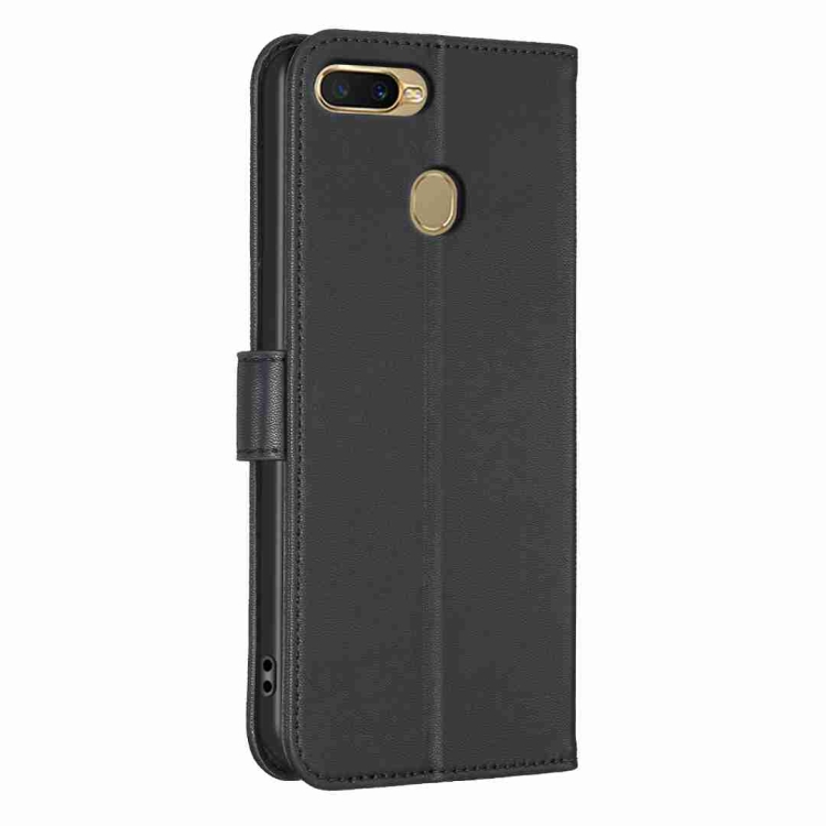 Para Oppo A7 Funda de Cuero con Relieve de Cuatro Hojas (Negro)