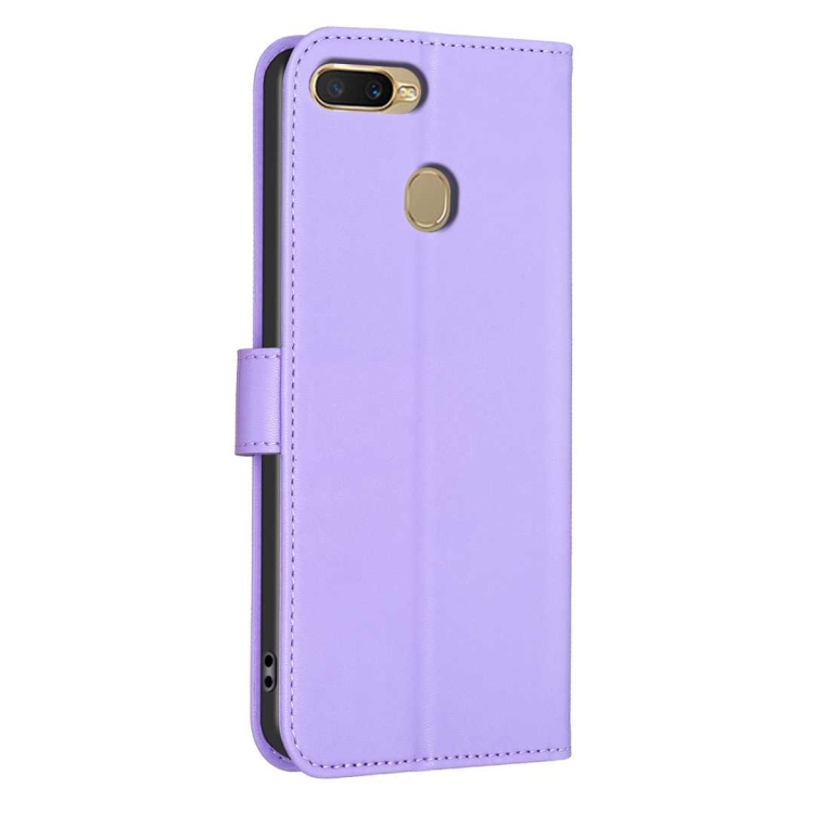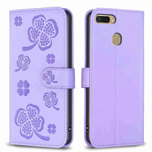 Para Oppo A7 Funda de Teléfono de Cuero En Relieve de Cuatro Hojas (Púrpura)