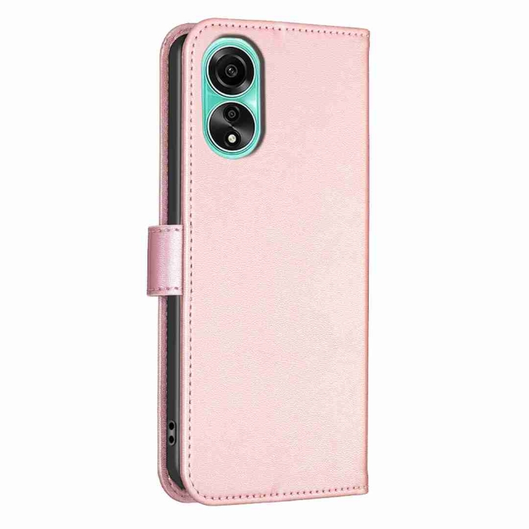 Para Oppo A78 4G Funda para Teléfono de Cuero con Relieve de Cuatro Hojas (Rosa)