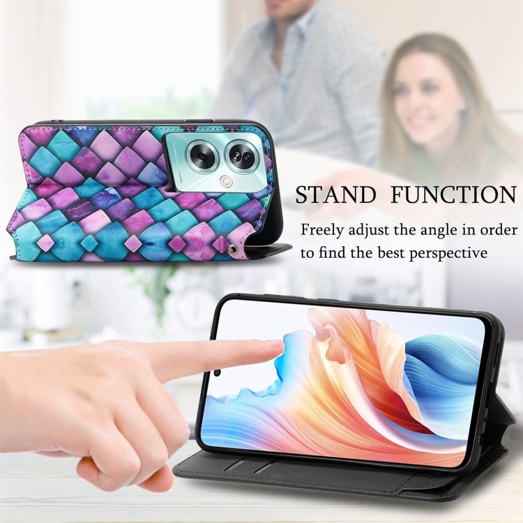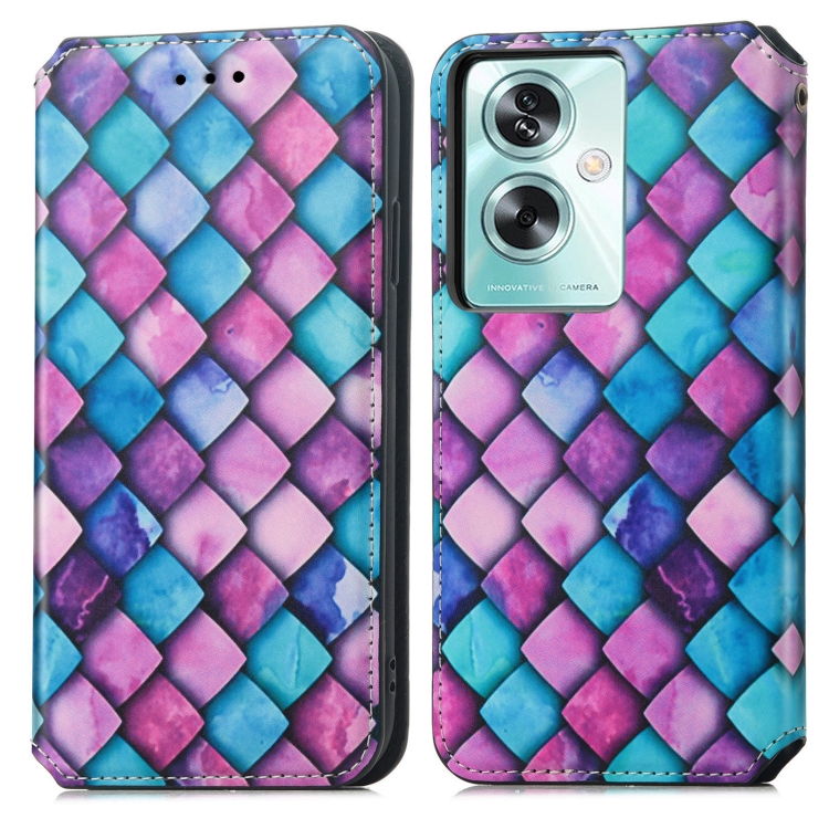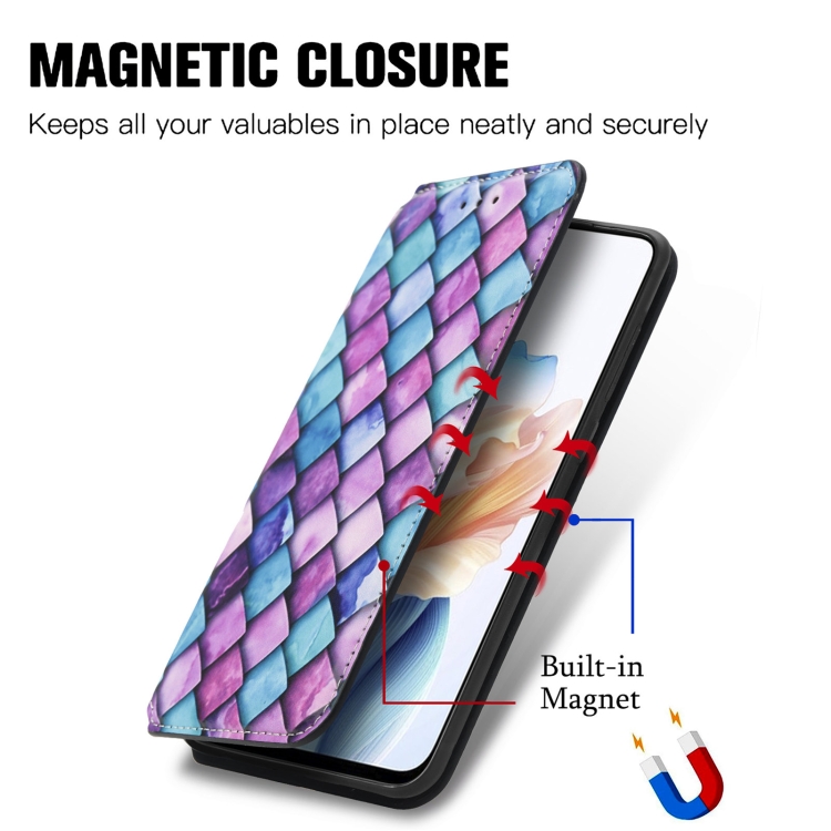 Para Oppo A79 5G / A2 5G Caseneo Funda de Cuero Magnética Colorida para Teléfono (Escamas Moradas)