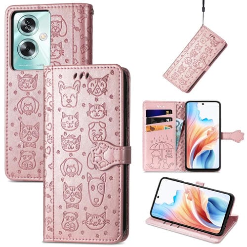 Para Oppo A79 5G / A2 5G Funda para Teléfono de Cuero con Relieve de Perro y Gato (Oro Rosa)