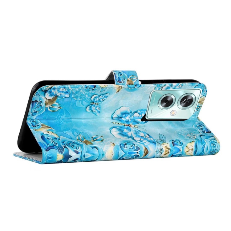 Para Oppo A79 5G Funda de Teléfono de Cuero con Dibujo 3D En Relieve al Óleo (Mariposas Azules)