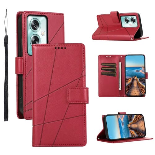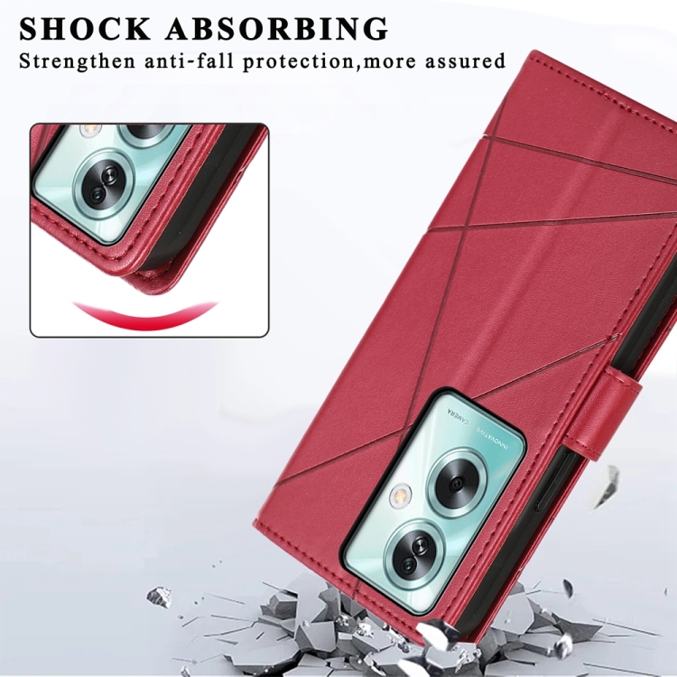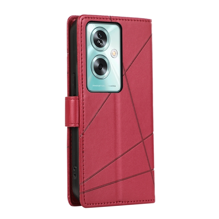 Para Oppo A79 5G Pu Funda para Teléfono con Línea En Relieve con Textura de Cuero Genuino (Rojo)