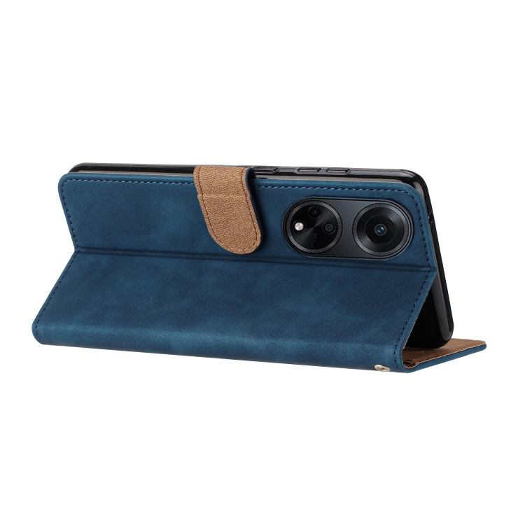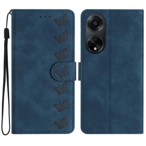 Para Oppo A98 5G Funda de Teléfono de Cuero con Relieve de Siete Mariposas (Azul)