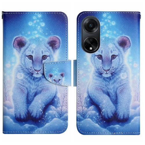 Para Oppo A98 Funda de Cuero para Teléfono con Patrón de Dibujo de Colores (Pequeño Leopardo)