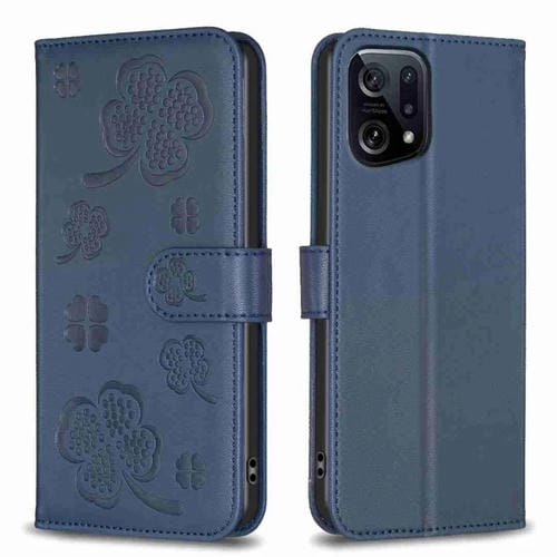 Para Oppo Find X5 Funda para Teléfono de Cuero con Relieve de Cuatro Hojas (Azul)
