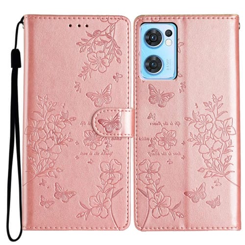 Para Oppo Find X5 Lite Funda para Teléfono de Cuero con Relieve de Flor de Amor y Mariposa (Oro Rosa)
