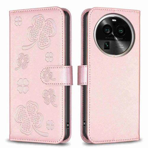 Para Oppo Find X6 Pro Funda de Cuero con Relieve de Cuatro Hojas para Teléfono (Rosa)