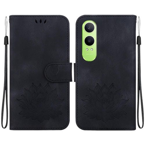 Para Oppo K12X Funda de Cuero con Relieve de Loto (Negro)