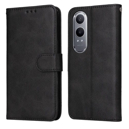 Para Oppo K12X Funda de Teléfono de Cuero con Tapa con Textura de Becerro Clásica (Negro)
