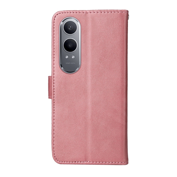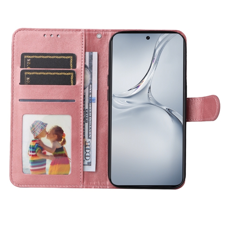 Para Oppo K12X Funda de Teléfono de Cuero con Tapa con Textura de Becerro Clásica (Oro Rosa)