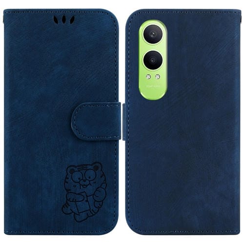 Para Oppo K12X Little Tiger Funda de Cuero En Relieve para Teléfono (Azul Oscuro)