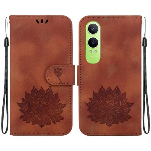 Para Oppo K12X Lotus Funda de Cuero En Relieve para Teléfono (Marrón)