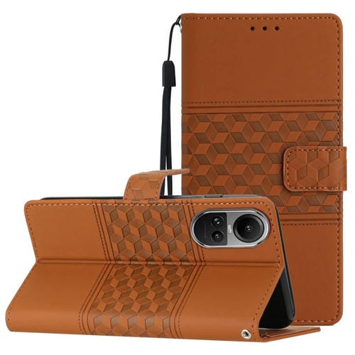 Para Oppo Reno10 5G / Reno10 Pro 5G Funda de Cuero para Teléfono con Sensación de Piel En Relieve de Diamante Global (Marrón)