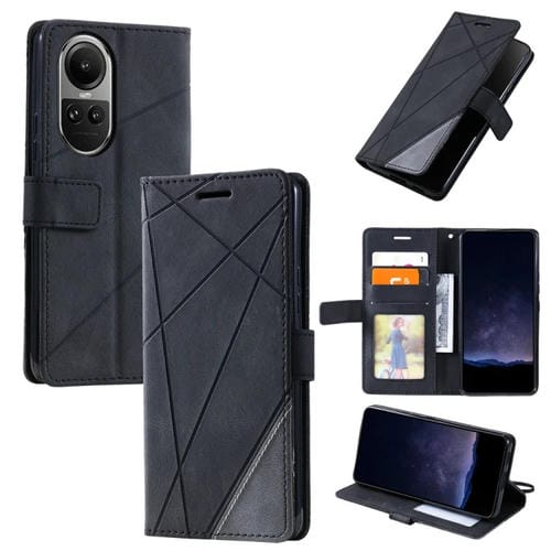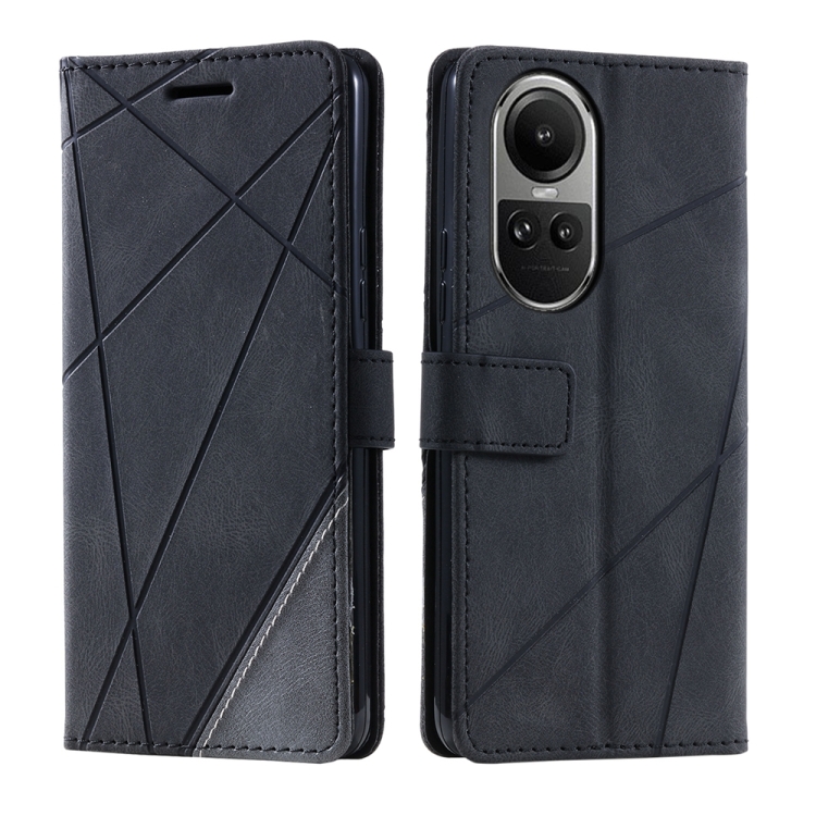 Para Oppo Reno10 Pro + Skin Feel Splicing Funda de Cuero para Teléfono (Negro)