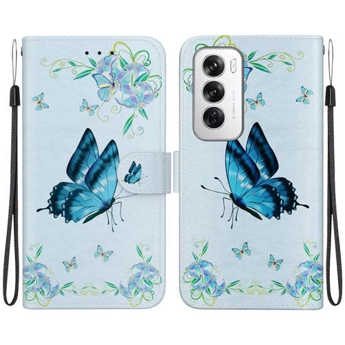 Para Oppo Reno12 5G Funda de Teléfono de Cuero con Dibujo Coloreado con Textura de Cristal Global (Pensamientos Azules)