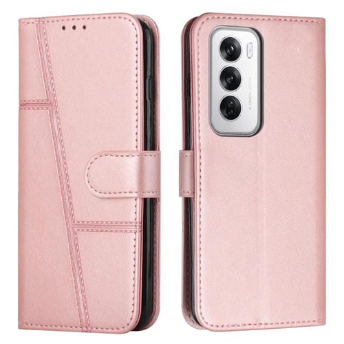 Para Oppo Reno12 5G Funda de Teléfono de Cuero con Hebilla y Textura de Becerro con Costura Global (Oro Rosa)
