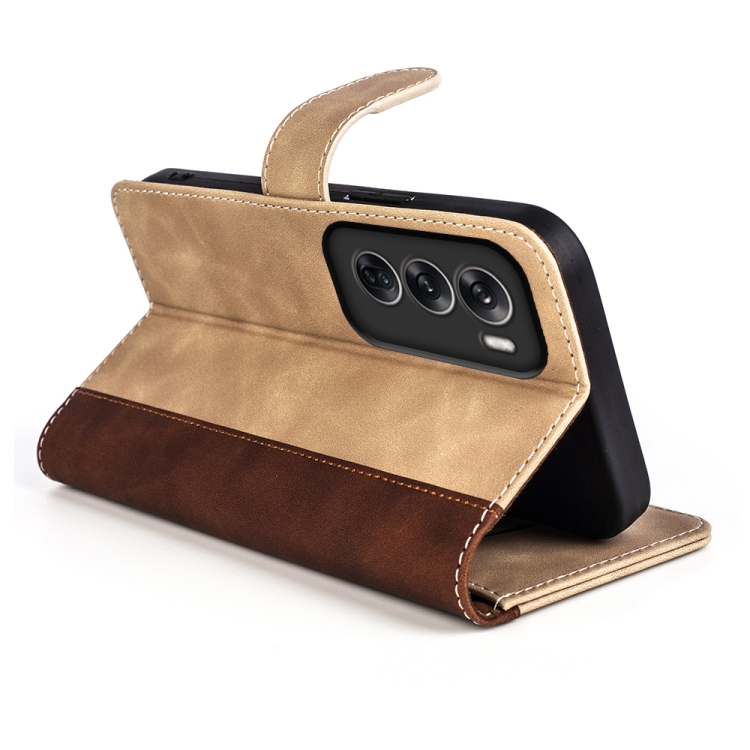 Para Oppo Reno12 5G Funda de Teléfono de Cuero con Tapa Horizontal con Costura Global (Amarillo)