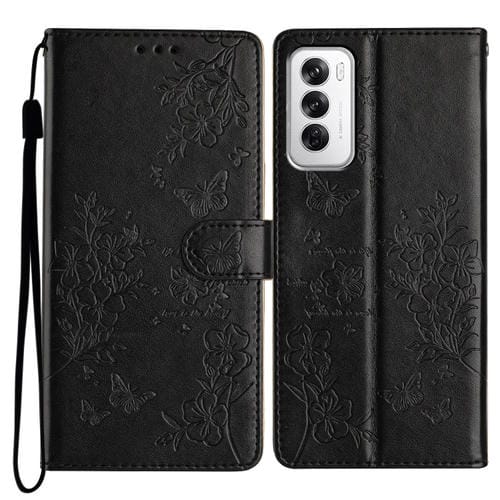 Para Oppo Reno12 5G Global Butterfly Love Flower Funda de Cuero para Teléfono En Relieve (Negro)