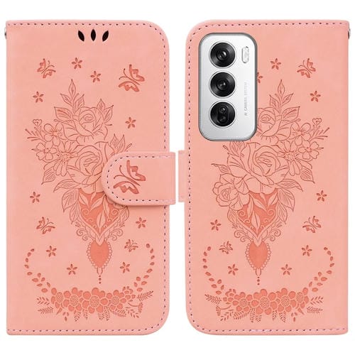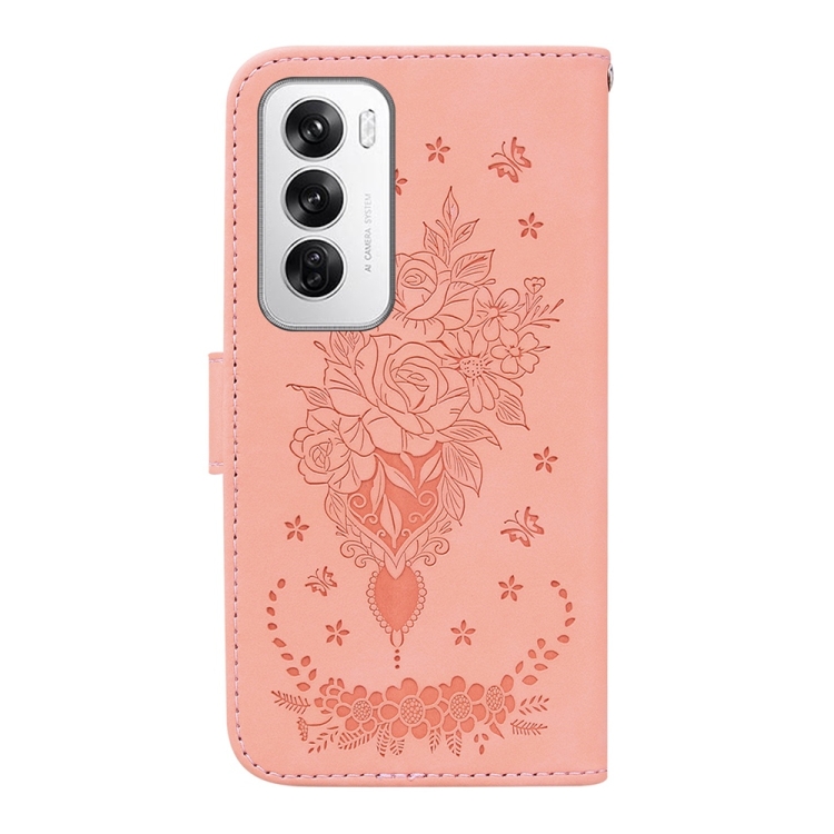 Para Oppo Reno12 5G Global Butterfly Rose Funda de Cuero para Teléfono En Relieve (Rosa)