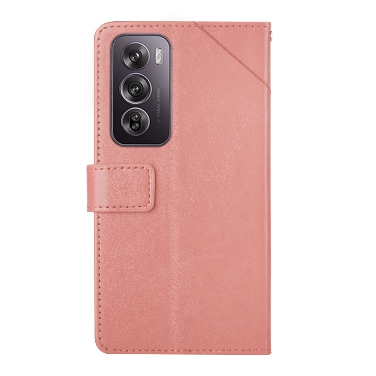 Para Oppo Reno12 5G Global Funda de Cuero con Tapa con Patrón En Forma de y (Rosa)