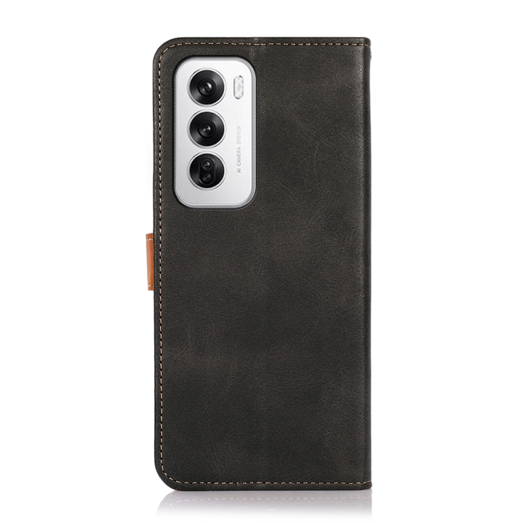 Para Oppo Reno12 5G Global Khazneh Funda para Teléfono de Cuero con Tapa con Textura de Piel de Vaca de Dos Colores (Negro)