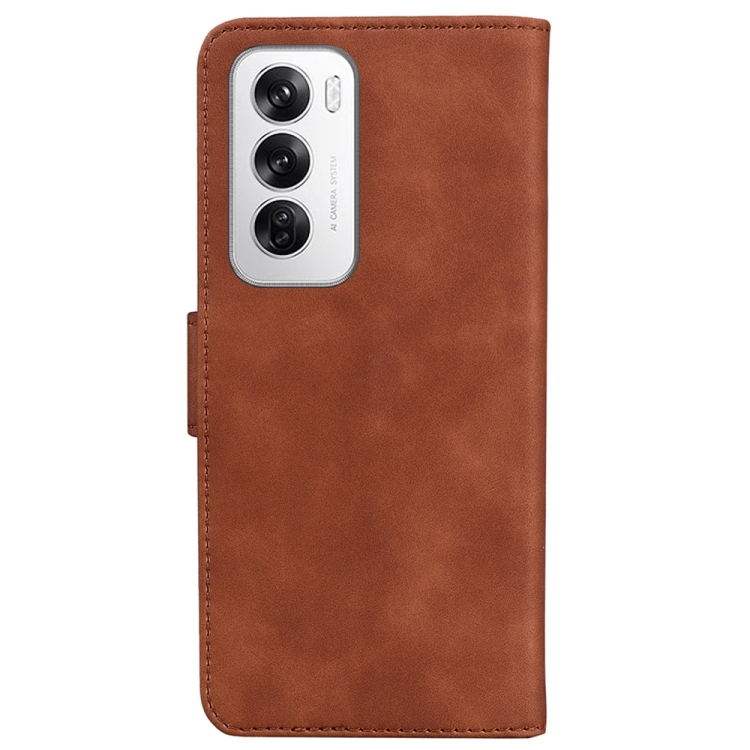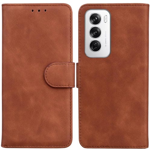 Para Oppo Reno12 5G Global Skin Feel Pure Color Funda de Cuero con Tapa para Teléfono (Marrón)