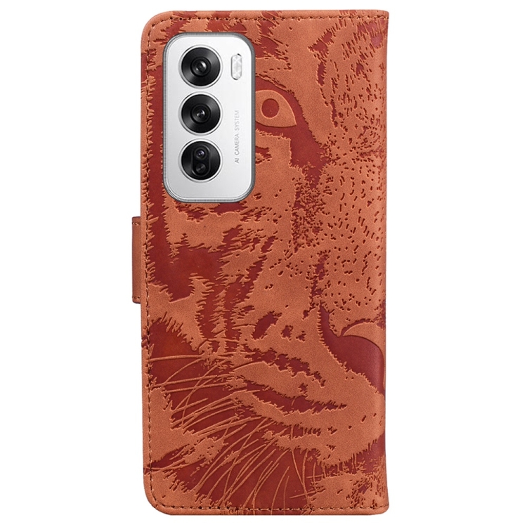 Para Oppo Reno12 5G Global Tiger Patrón En Relieve Funda de Cuero con Tapa para Teléfono (Marrón)