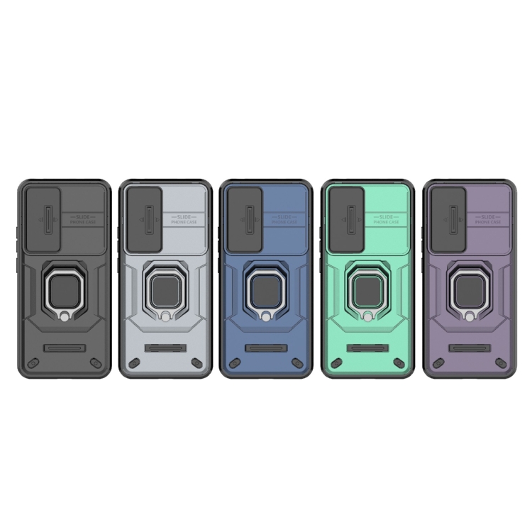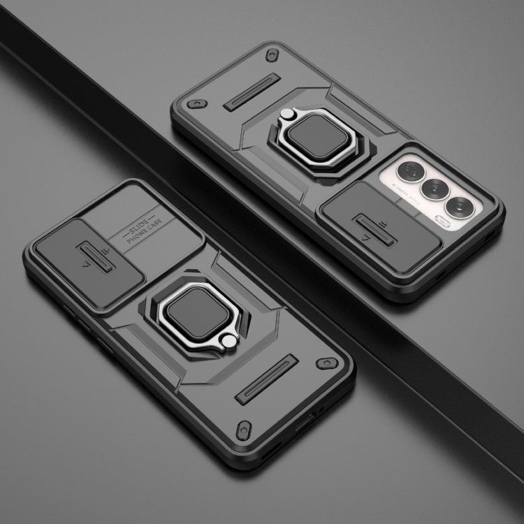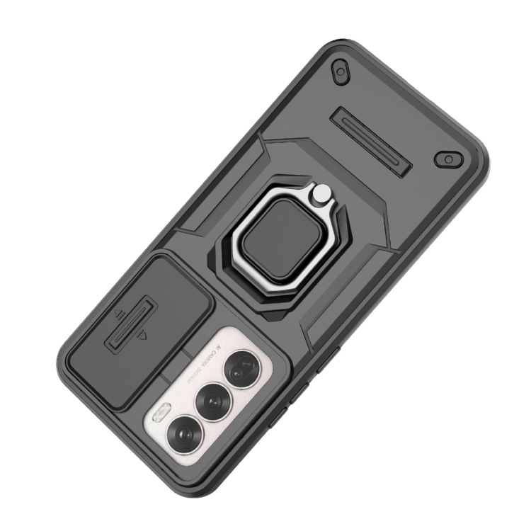Para Oppo Reno12 Global Sliding Camshield TPU + PC Funda para Teléfono a Prueba de Golpes con Soporte (Negro)