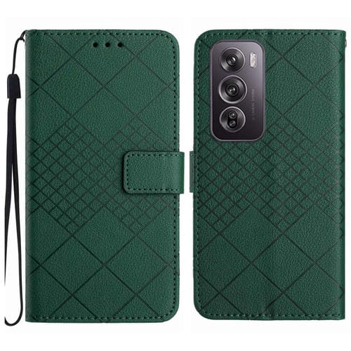 Para Oppo Reno12 Pro 5G Funda de Cuero para Teléfono con Textura de Rejilla Rómbica Global (Verde)