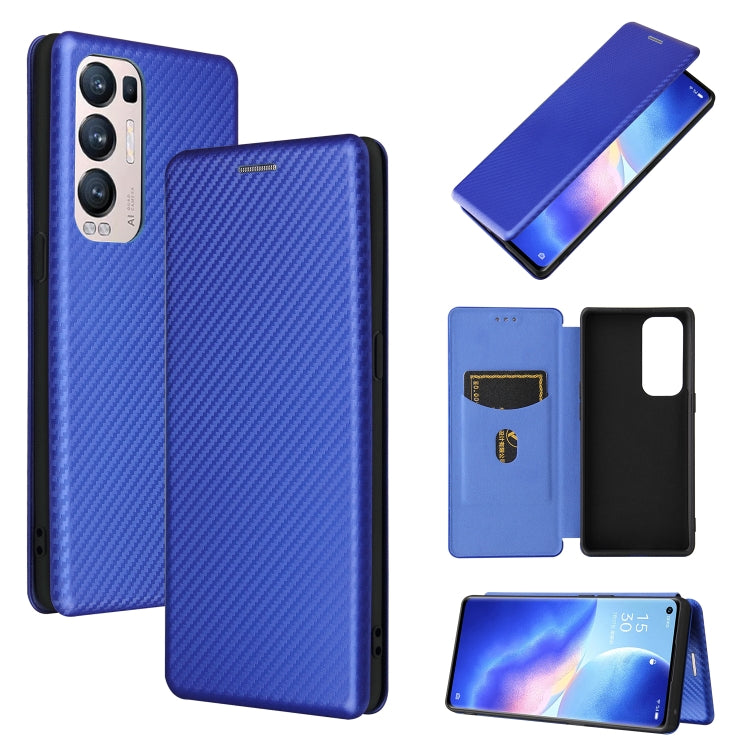 Funda para Oppo Reno5 Pro con Fibra de Carbono Textura Magnético Horizontal Flip TPU + PC + Cuero PU con Ranura para Tarjeta (Azul)