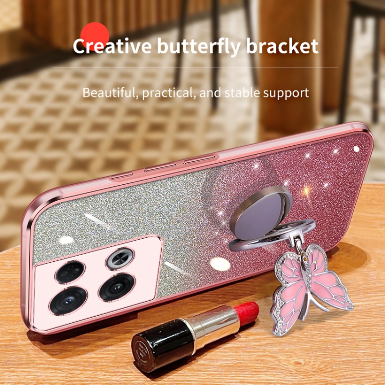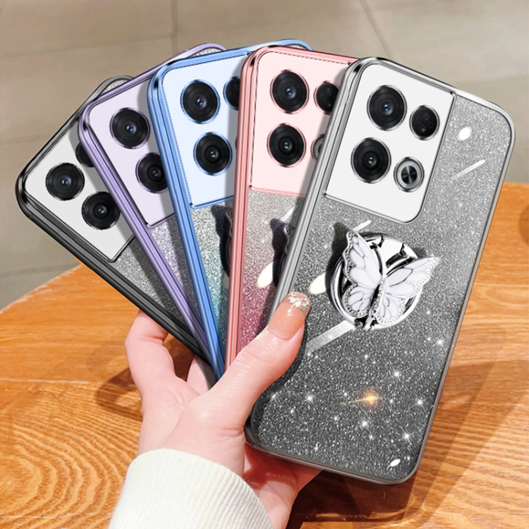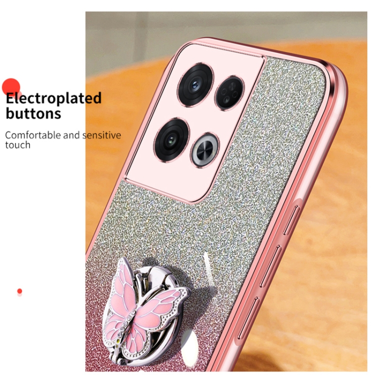 Para Oppo Reno8 Pro Funda para Teléfono de TPU con Soporte de Mariposa con Brillo Degradado Plateado (Azul Sierra)