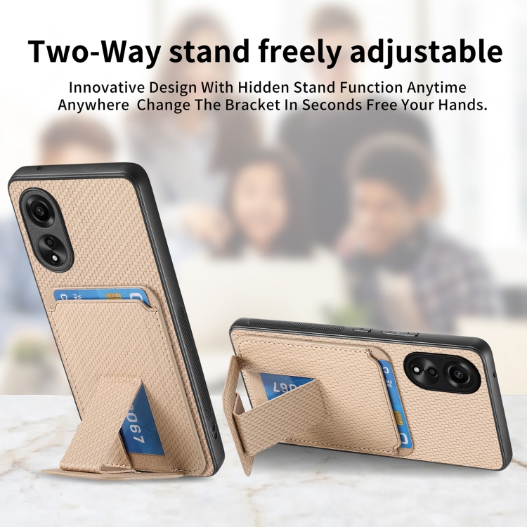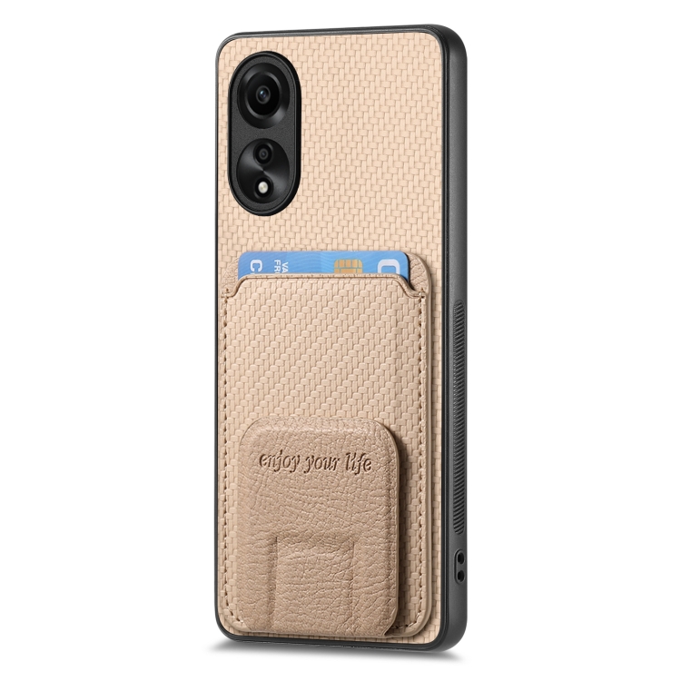 Para Oppo Reno8 T 4G Funda para Teléfono con Soporte Plegable y Bolsa para Tarjetas de Fibra de Carbono (Caqui)