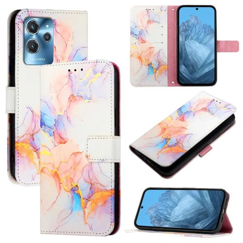 Funda de Cuero con Tapa para Oukitel C32 Pt003 con Patrón de Mármol (Galaxy Marble White)