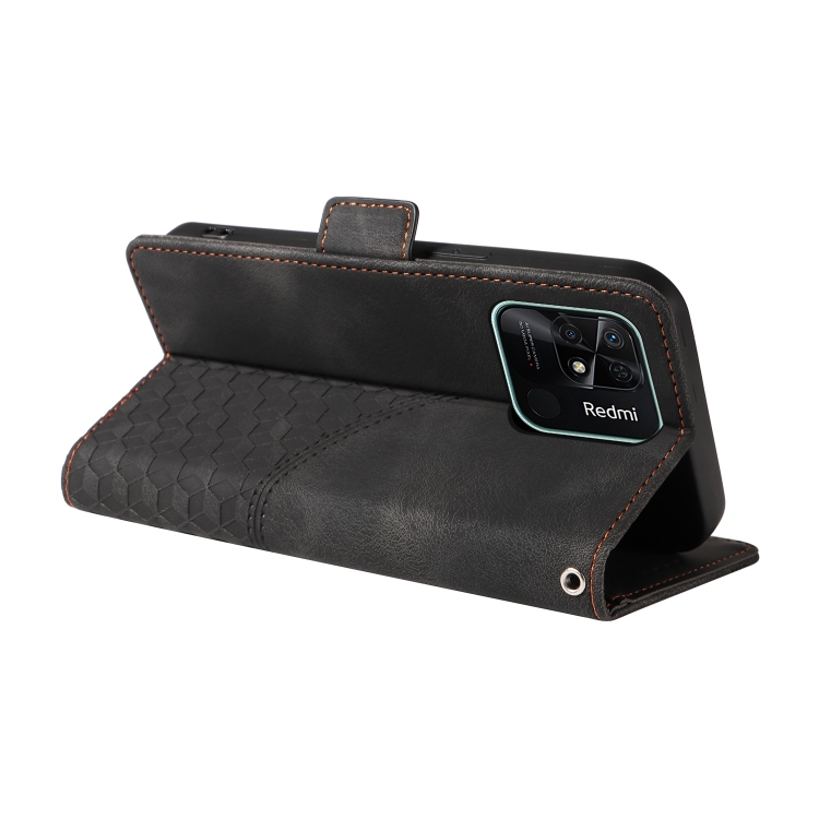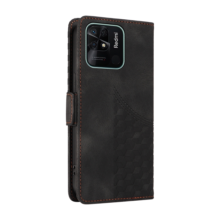 Para Redmi 10C / 10 India Funda para Teléfono de Cuero Estrellado con Rombos En Relieve (Negro)