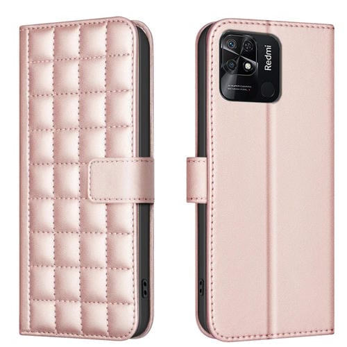 Para Redmi 10C Funda de Cuero con Textura Cuadrada (Oro Rosa)