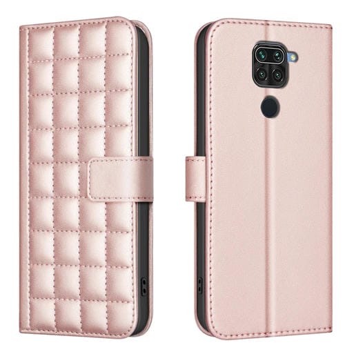 Para Redmi 10X 4G / Note 9 Funda de Cuero para Teléfono con Textura Cuadrada (Oro Rosa)