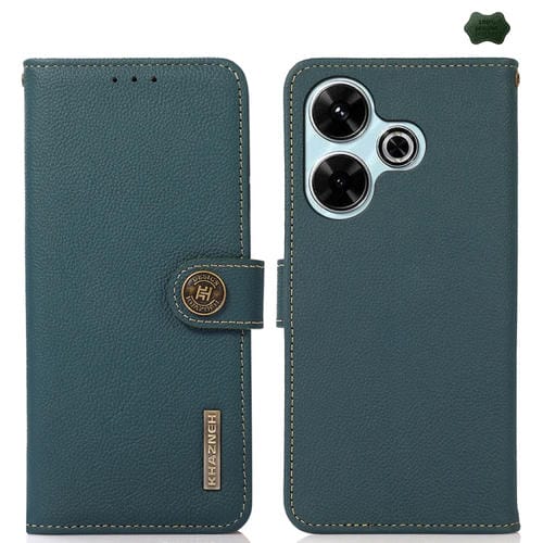 Para Redmi 13 4G Khazneh Custer Texture Rfid Funda para Teléfono de Cuero Genuino (Verde)