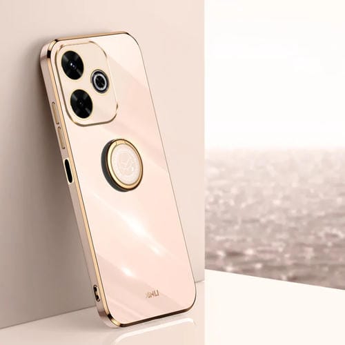Para Redmi 13 4G Xinli Funda a Prueba de Golpes de TPU con Borde Dorado y Revestimiento 6D Recto con Soporte para Anillo (Rosa)